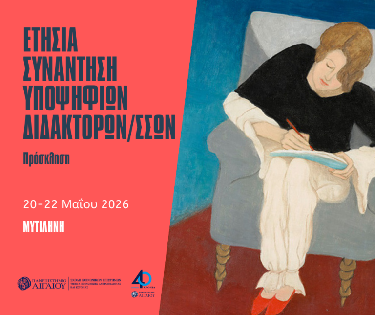 The Department of Social Anthropology and History of the University of the Aegean organizes the annual meeting for PhD candidates to present their work in Mytilene on the dates: 20-22 May 2026.